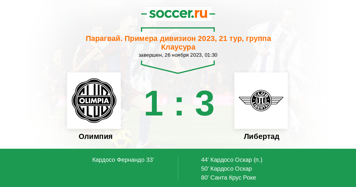 33' (1:0) Кардосо Фернандо (14) (Завала Факундо (36))