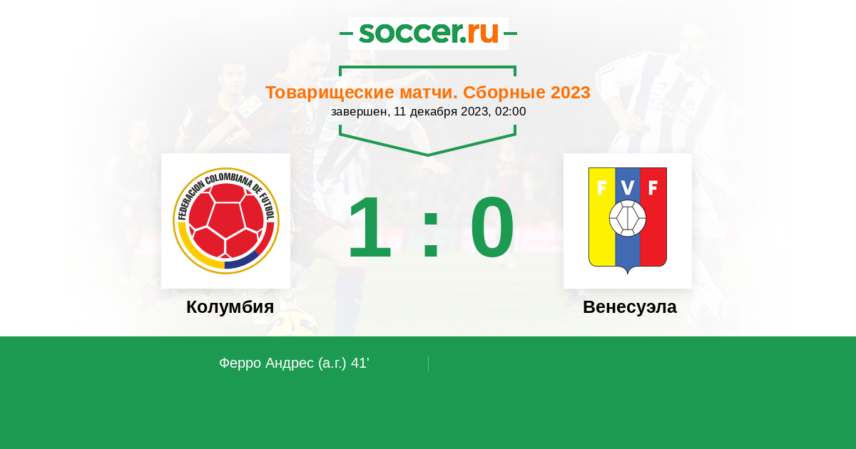 41' (1:0) Автогол Ферро Андрес (4)