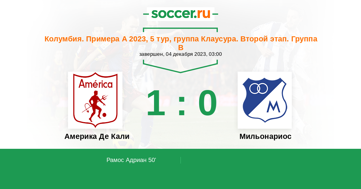 50' (1:0) Рамос Адриан (20) (Мена Эснейдер (26))