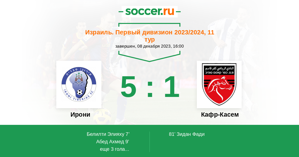 Запасные: Канани Асил (с 46'), Эль Абид Яхаб (с 46'), Малка Шон (с 46'), Зидан Фади (с 58'), Шафики Эллай (с 62'), Таха Ахмад, Амер Мохамад, Дога Рой, Озер Йехонатан