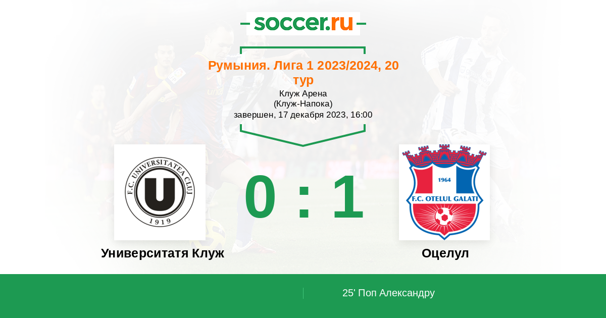 25' (0:1) Поп Александру (11) (Масьель Фредерик (67))