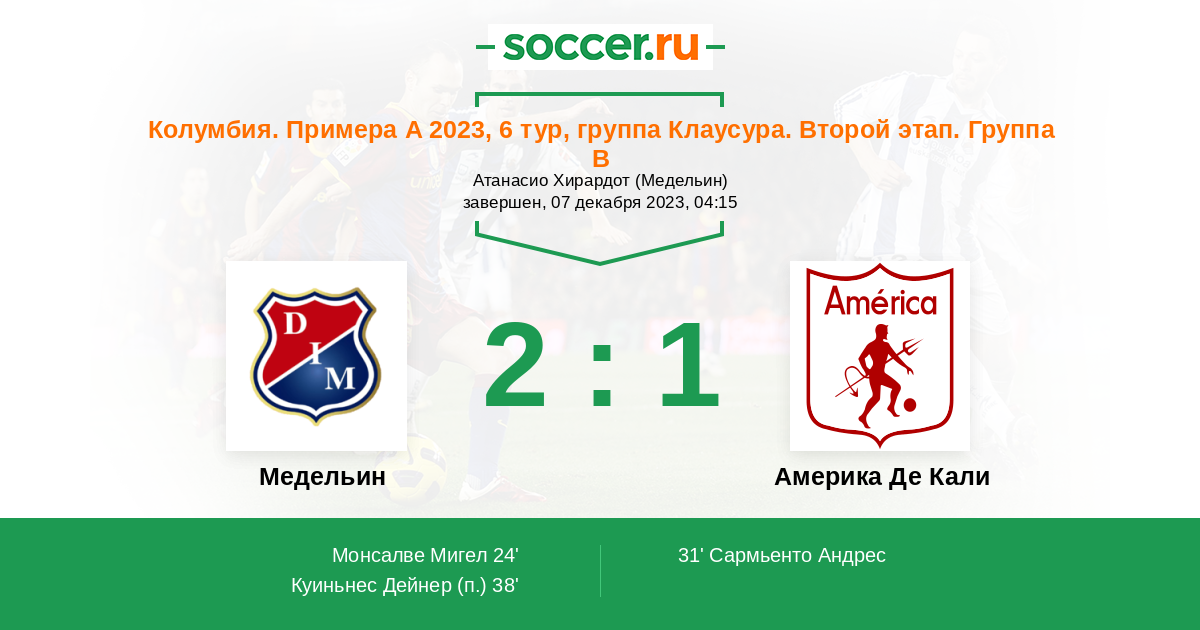 31' (1:1) Сармьенто Андрес (29) (Мена Эснейдер (26))