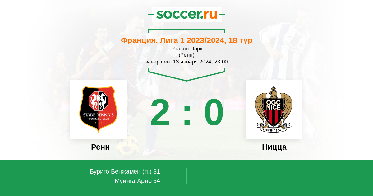 54' (2:0) Муинга Арно (9) (Ле Фи Энцо (28))