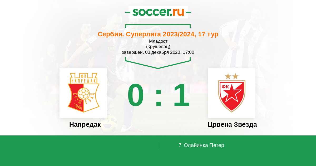 7' (0:1) Олайинка Петер (14) (Миятович Йован (22))