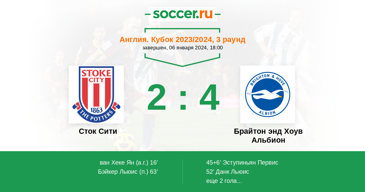 71' (2:3) Жоао Педро (9) (Гросс Паскаль (13))