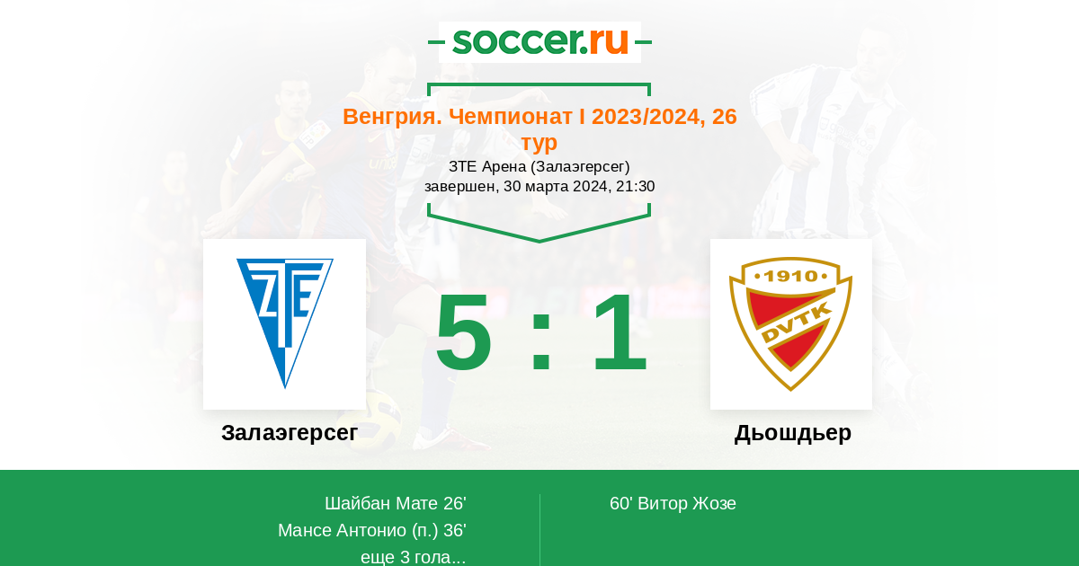 90+3' (5:1) Шайбан Мате (9) (Вогьичска Балаж (88))