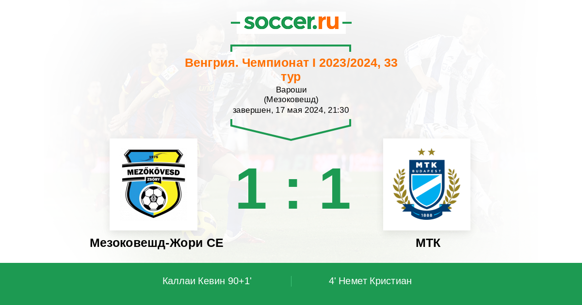 90+1' (1:1) Каллаи Кевин (72) (Койнок Жольт (29))