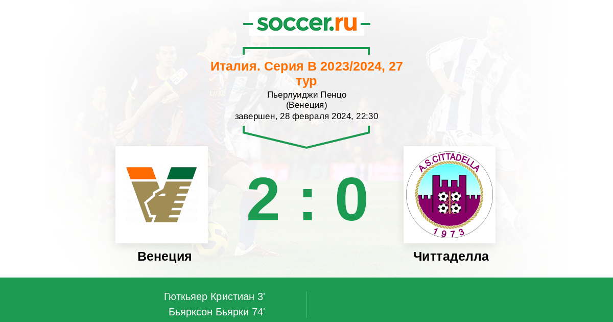 3' (1:0) Гюткьяер Кристиан (9) (Альтаре Джорджио (15))