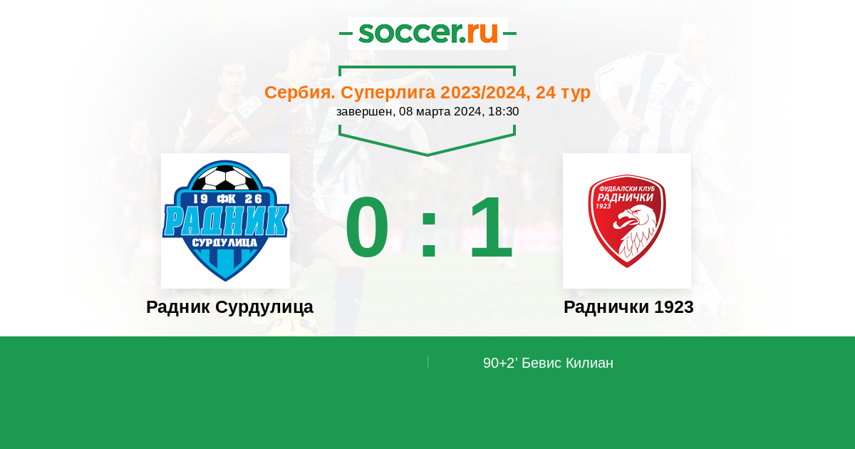 Запасные: 10 Дамир Шовшич (с 62'), 50 Йованович Лазар (с 71'), 9 Богданович Вукашин (с 71'), 15 Мартинкевич Матвей (с 85'), 37 Абубакар Садик, 12 Вукадинович Вук, 3 Стоянович Матея, 6 Враньянин Милош, 32 Стойкович Богдан, 76 Анделкович Йован