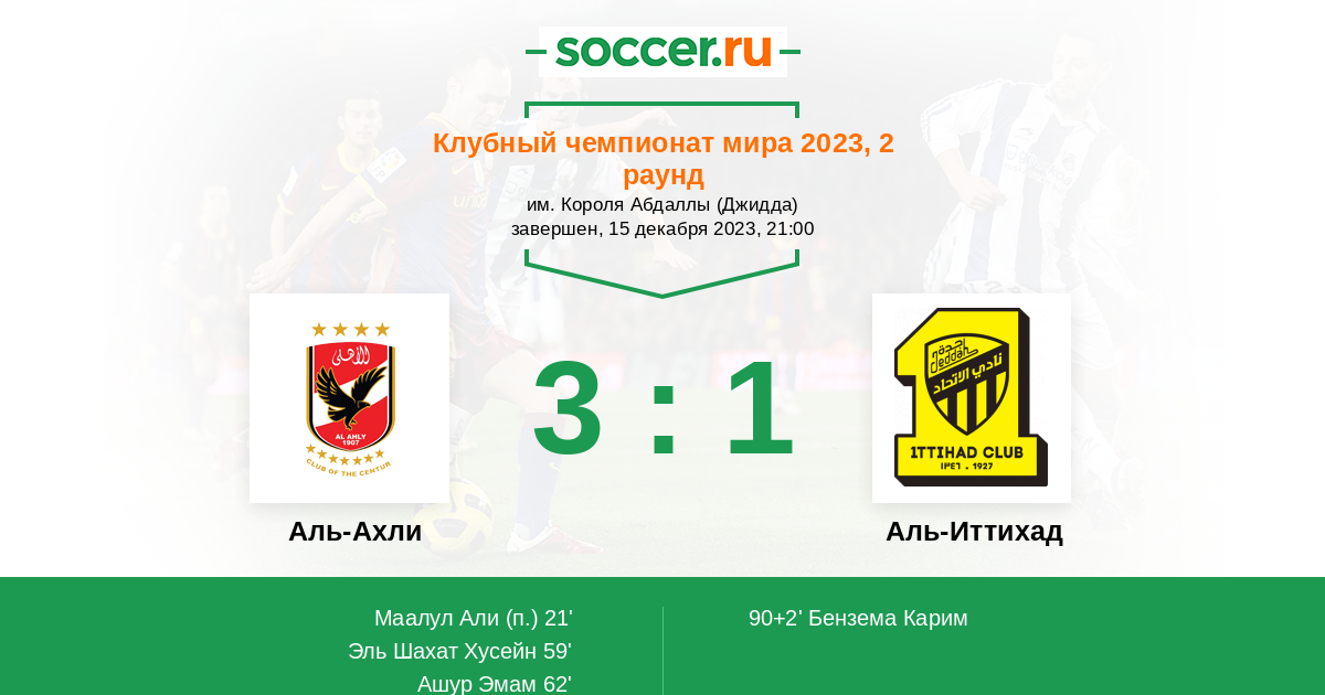 59' (2:0) Эль Шахат Хусейн (14) (Кахраба Махмуд (7))