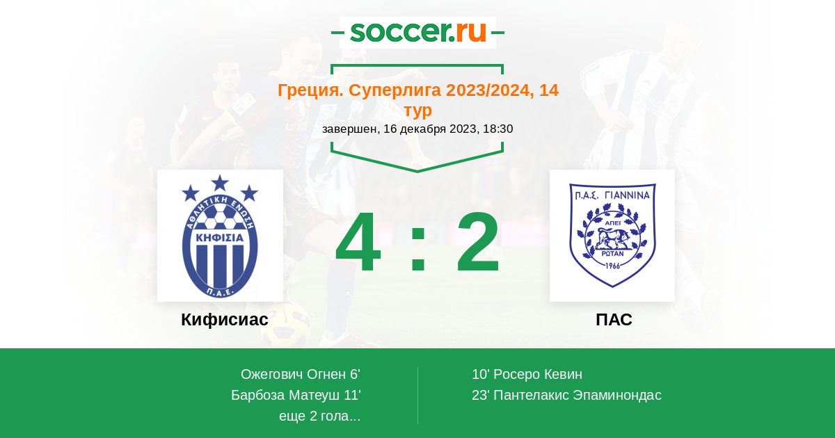 11' (2:1) Барбоза Матеуш (17) (Константакопулос Георгиос (60))