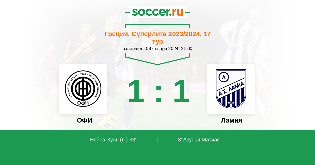 3' (0:1) Акунья Матиас (29) (Пападопулос Кирьякос (20))