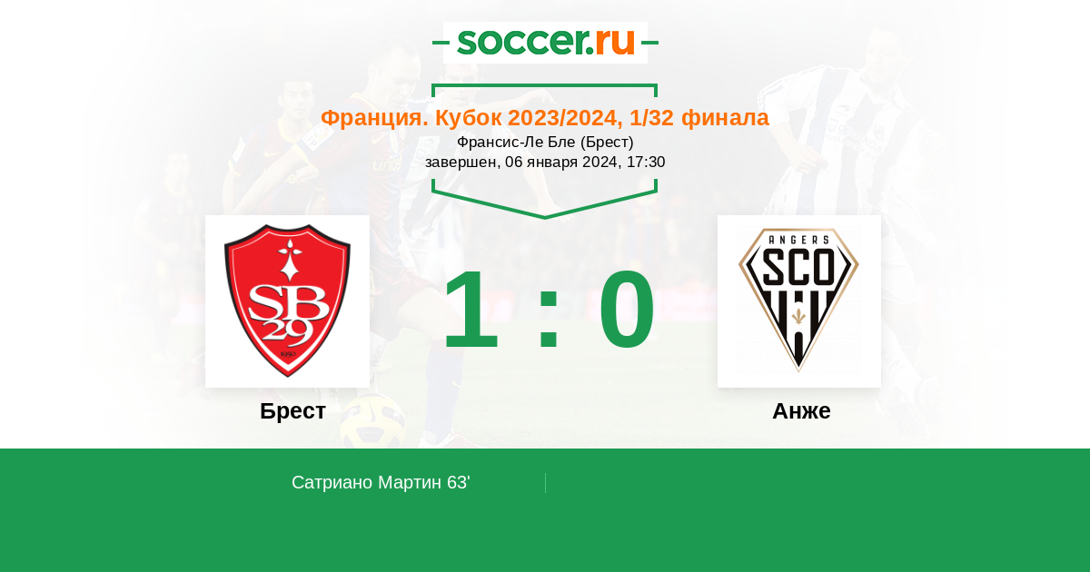 63' (1:0) Сатриано Мартин (9) (Камара Махди (7))