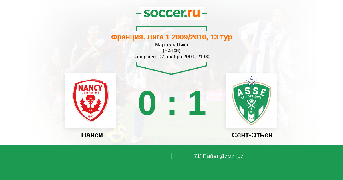 71' (0:1) Пайет Димитри (7) (Ландрин Кристоф (19))
