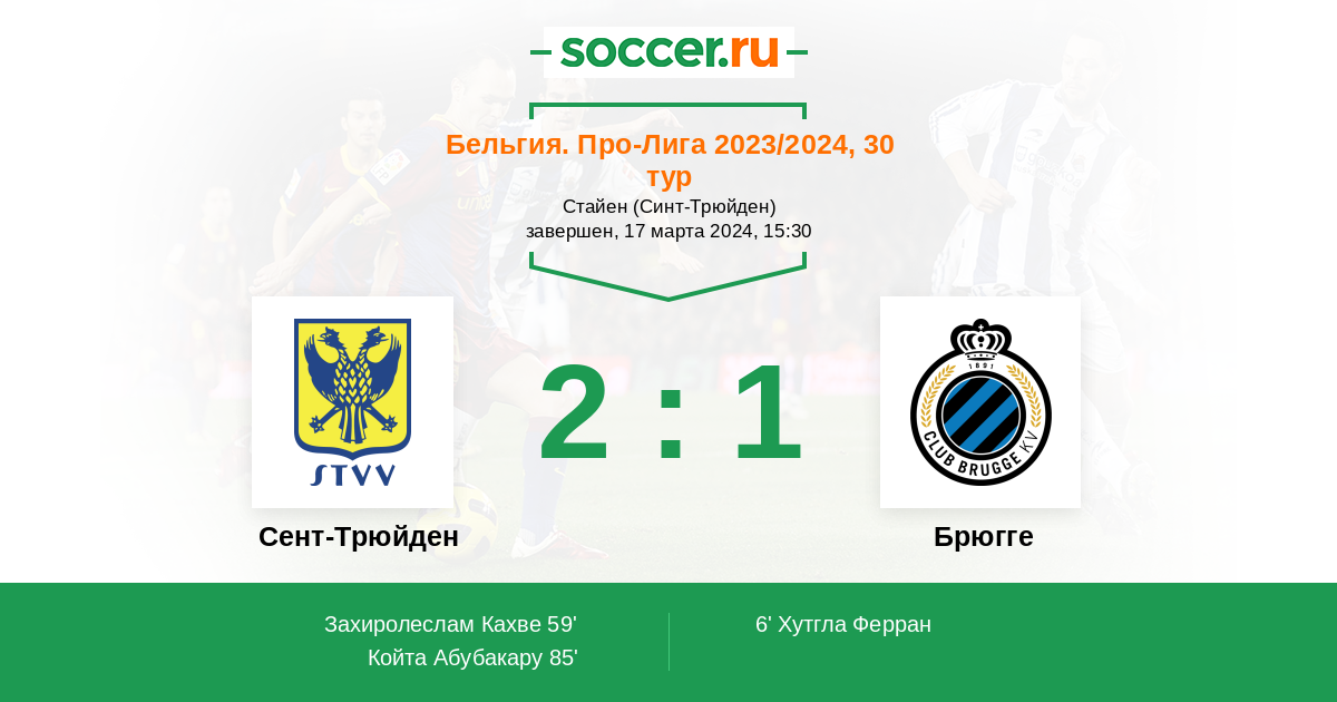 6' (0:1) Хутгла Ферран (9) (Нвадике Рафаэль (15))