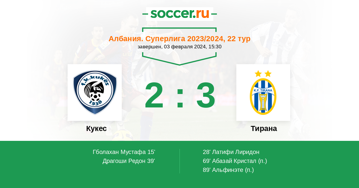 Запасные: Альфинэте (с 62'), Ники Диар (с 81'), Мичи Гледи (с 90'), Ахметай Дион, Тола Хажрулла, Яку Жорди, Кожи Леон, Черени Мелси, Сулай Рижерс