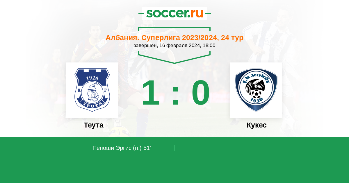 Запасные: Фили Реалдо (с 46'), Бекья Ледио (с 69'), Демиркани Девит (с 86'), Халилай Арсельд, Прелоши Алисио, Дема Эндри, Бочи Муко, Тепши Ригель