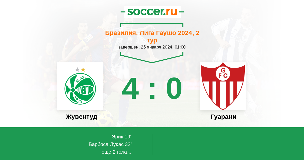 32' (2:0) Барбоса Лукас (21) (Эрик (7))