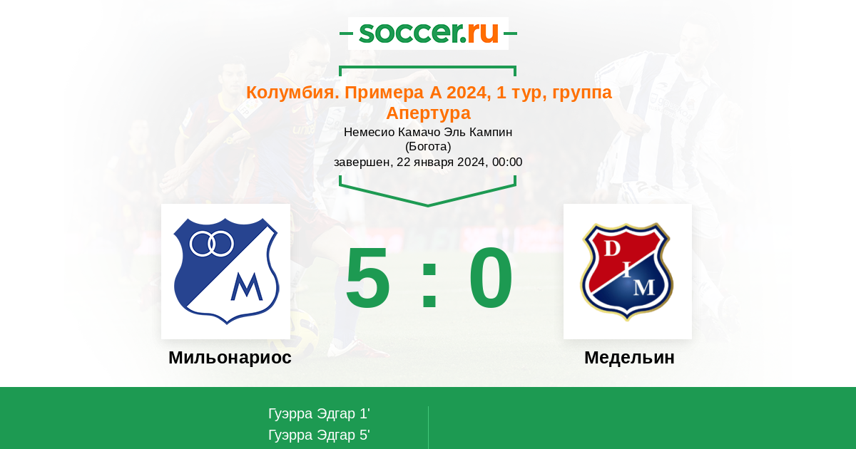 1' (1:0) Гуэрра Эдгар (15) (Кастро Леонардо (23))