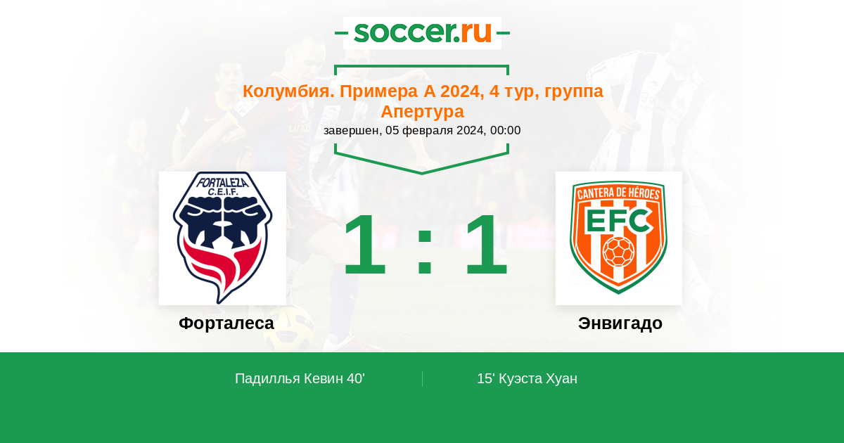 40' (1:1) Падиллья Кевин (8) (Парра Адриан (30))