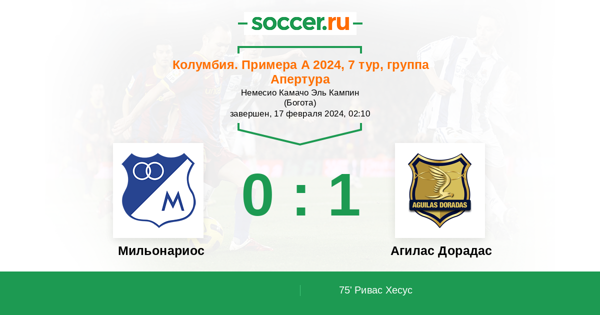 75' (0:1) Ривас Хесус (22) (Салазар Джон (20))