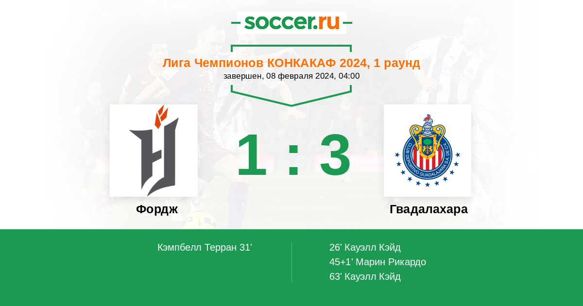 26' (0:1) Кауэлл Кэйд (16) (Гонсалес Рубен (28))