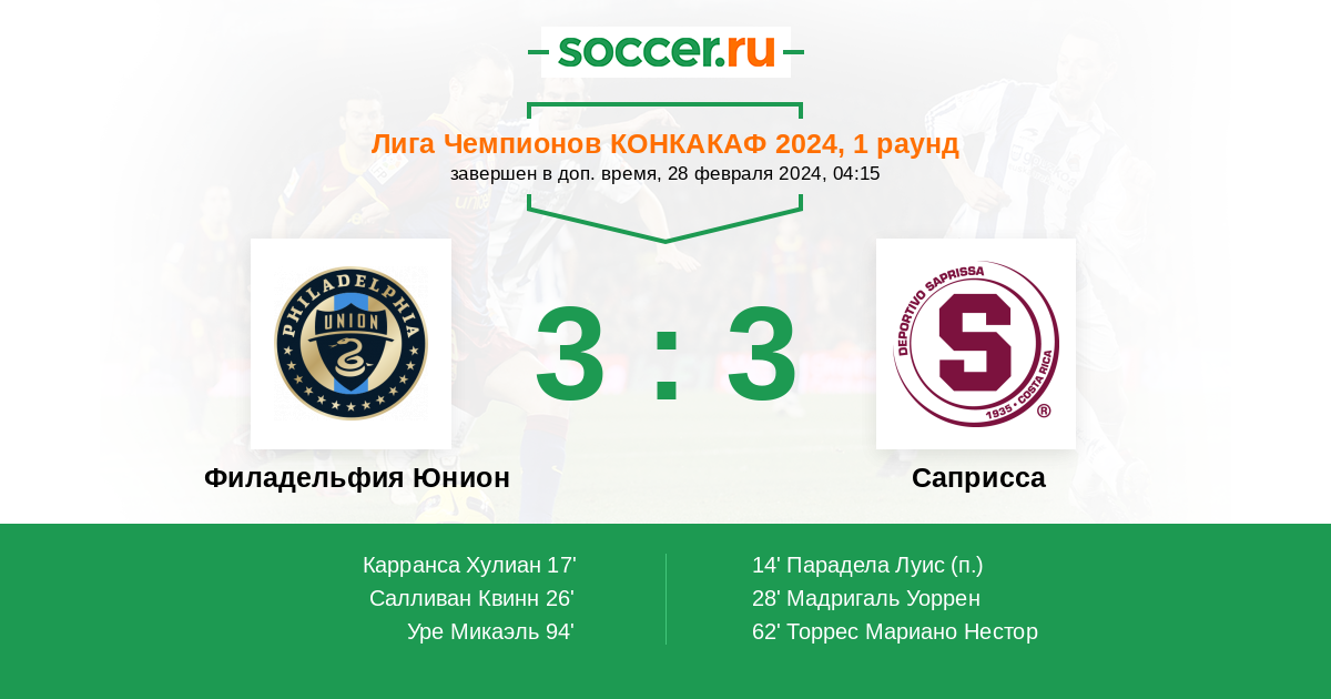 17' (1:1) Карранса Хулиан (9) (Салливан Квинн (33))