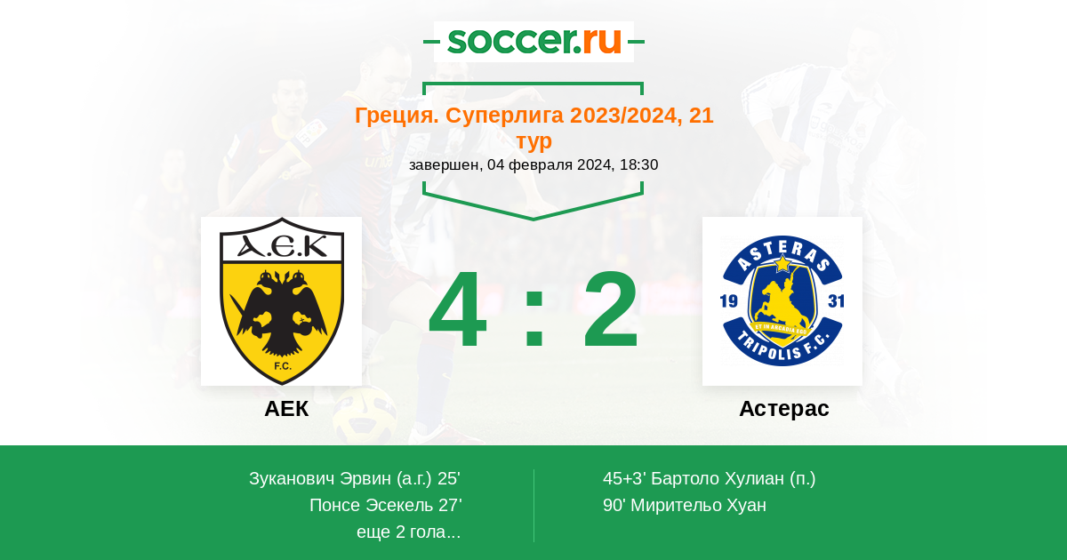 76' (4:1) Гарсия Ливай (7) (Манталос Петрос (20))