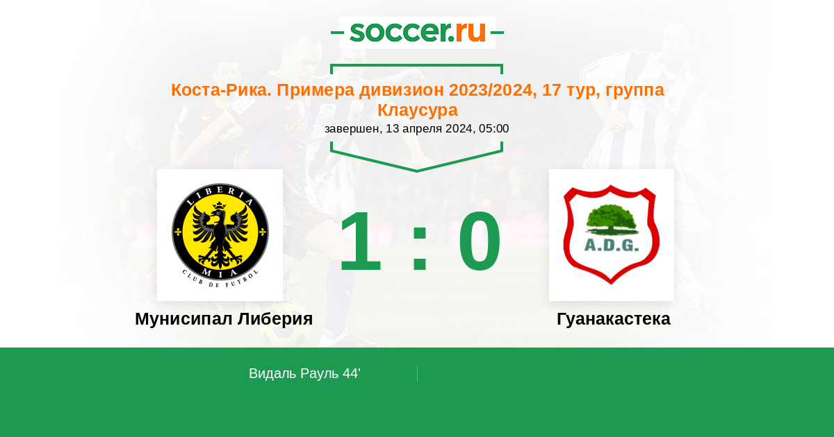 44' (1:0) Видаль Рауль