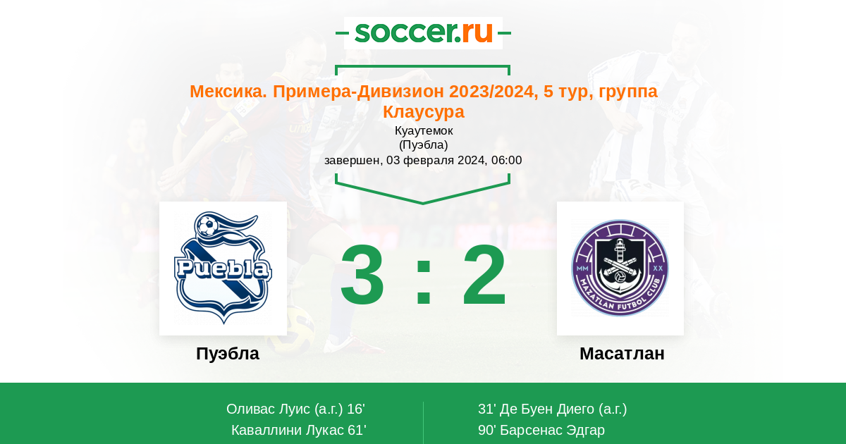 16' (1:0) Автогол Оливас Луис (2)