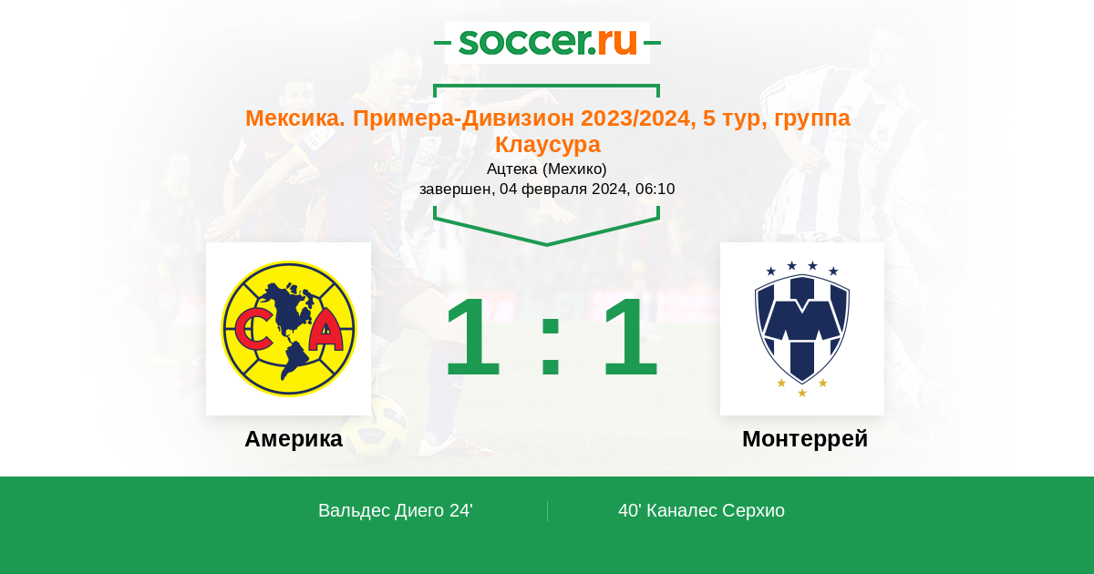 24' (1:0) Вальдес Диего (10) (Лара Эмилио (23))