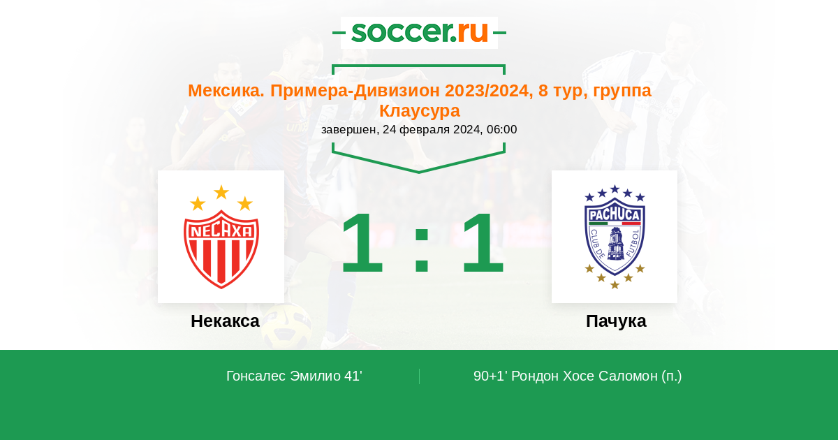 41' (1:0) Гонсалес Эмилио (2) (Арче Фернандо (33))