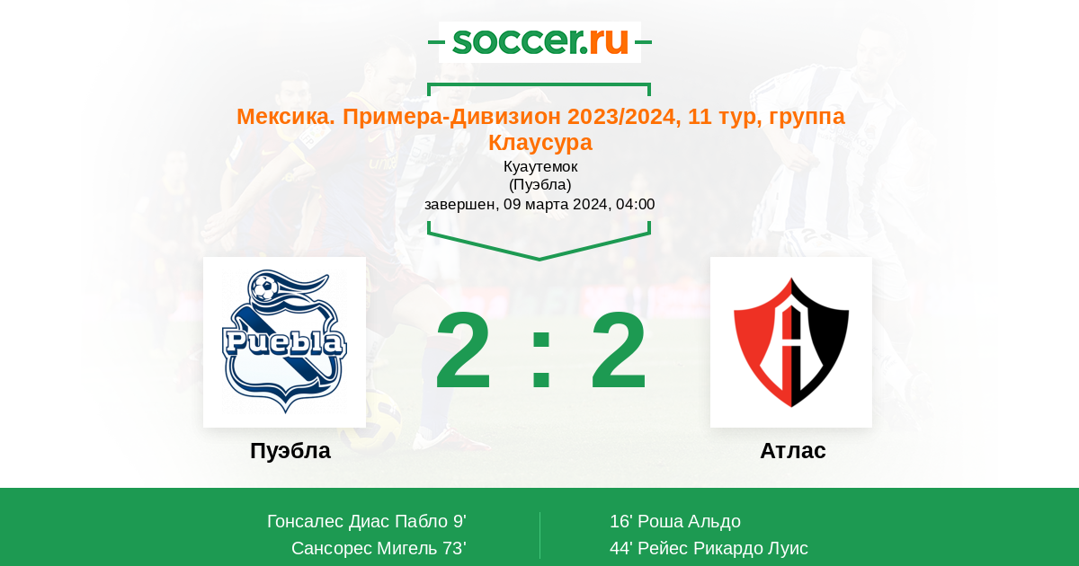 9' (1:0) Гонсалес Диас Пабло (6) (Карабахал Орасио (11))
