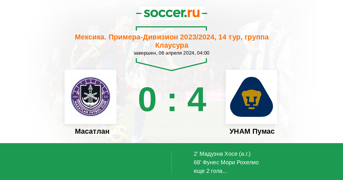 68' (0:2) Фунес Мори Рохелио (29) (Уэрта Сезар (12))