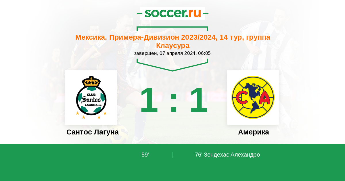 59' (1:0) S. Carrillo (Лопес Альдо (16))