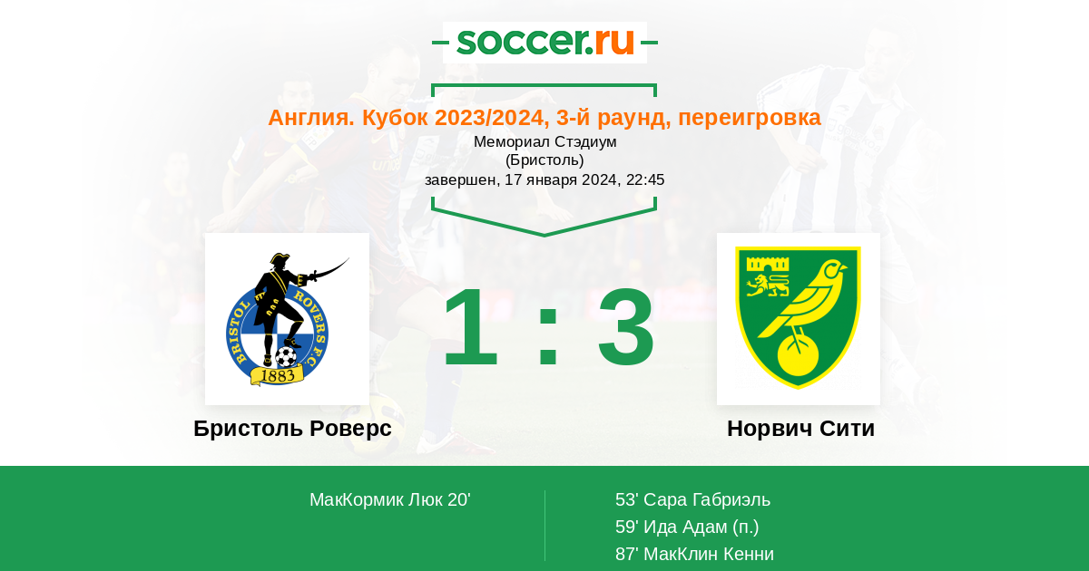 Бристоль Роверс - Норвич Сити