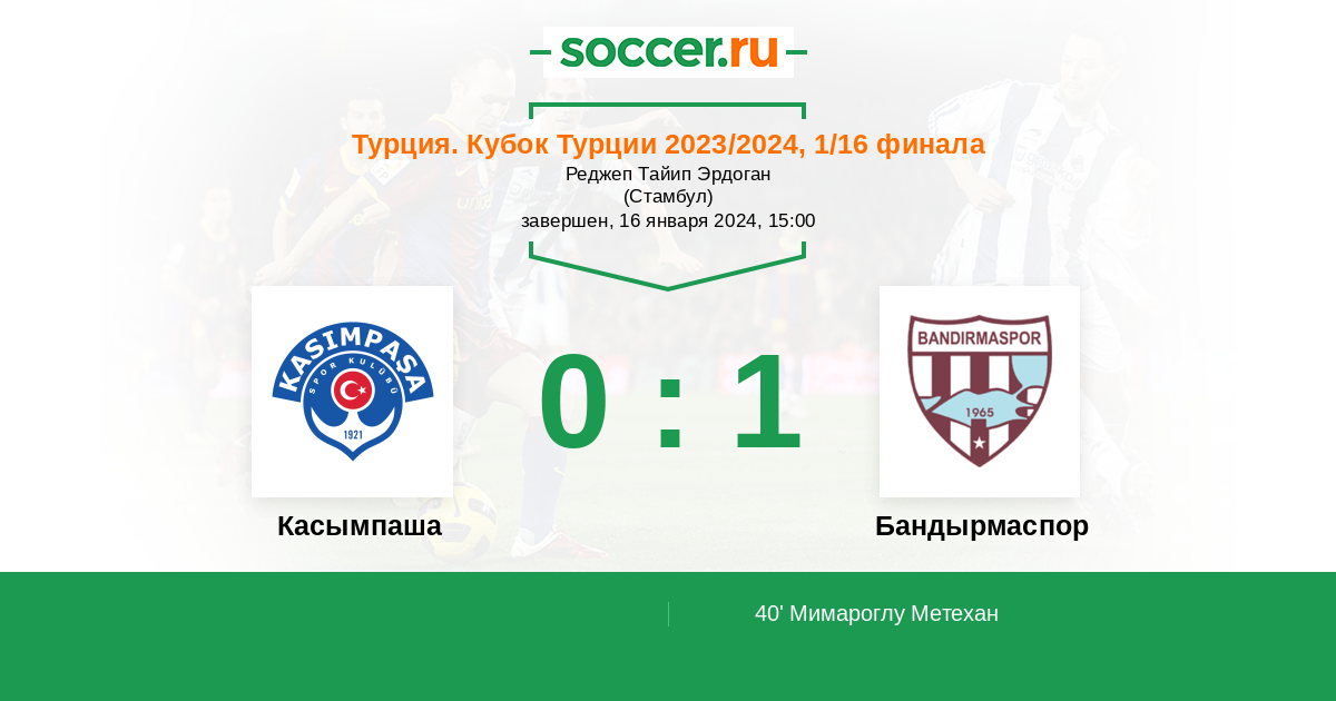40' (0:1) Мимароглу Метехан (9) (Фор Навароне (25))