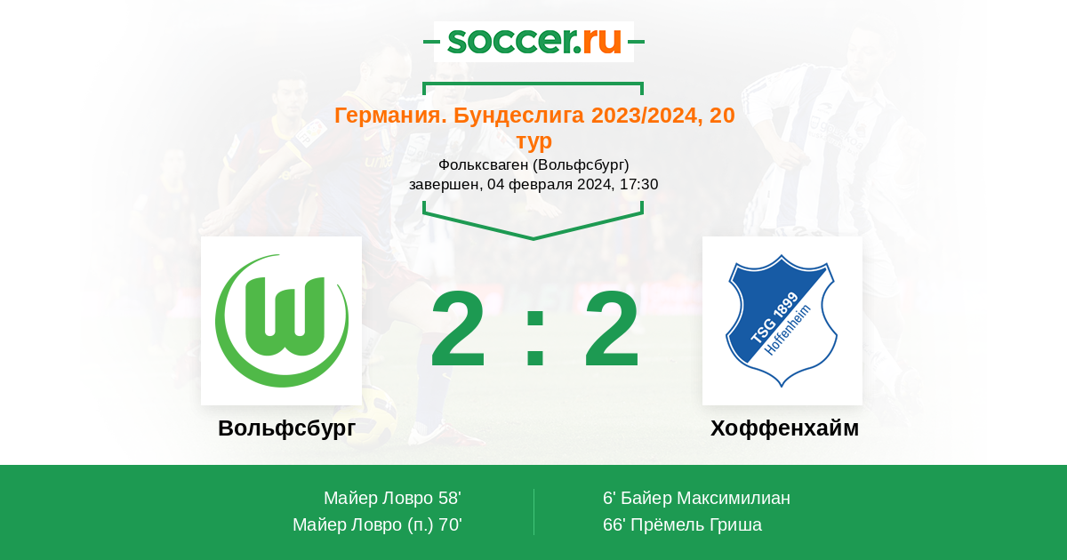 Вольфсбург - Хоффенхайм