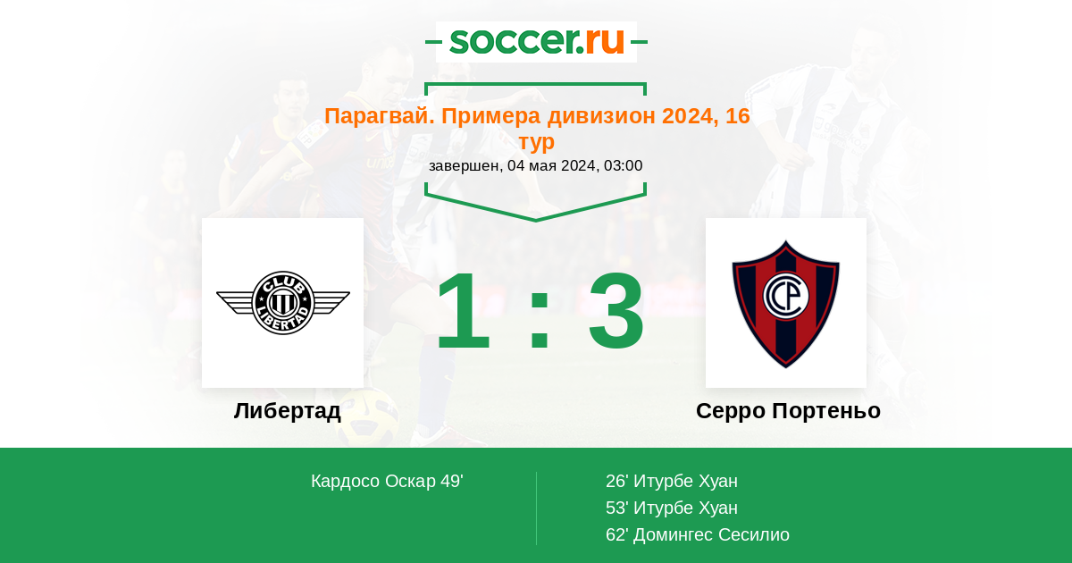26' (0:1) Итурбе Хуан (11) (Каррисо Федерико Гастон (8))
