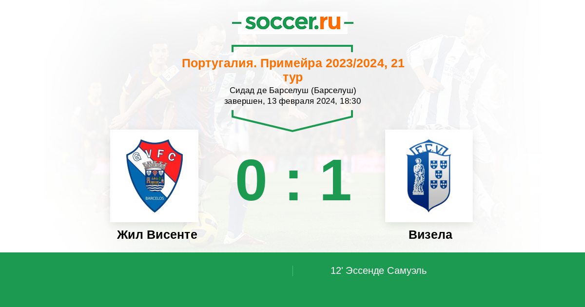 12' (0:1) Эссенде Самуэль (99) (Насименто Диогу (90))