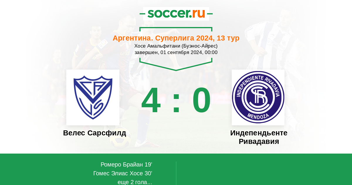 Велес Сарсфилд - Индепендьенте Ривадавия