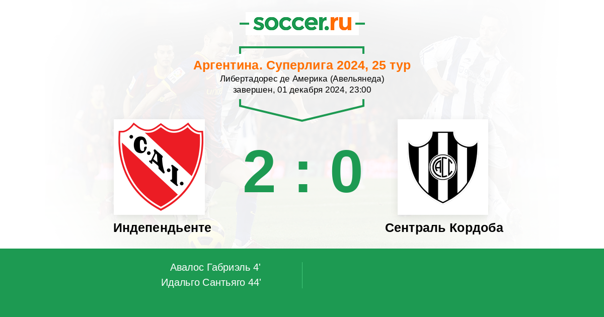 44' (2:0) Идальго Сантьяго (16) (Марконе Иван Хосе (23))