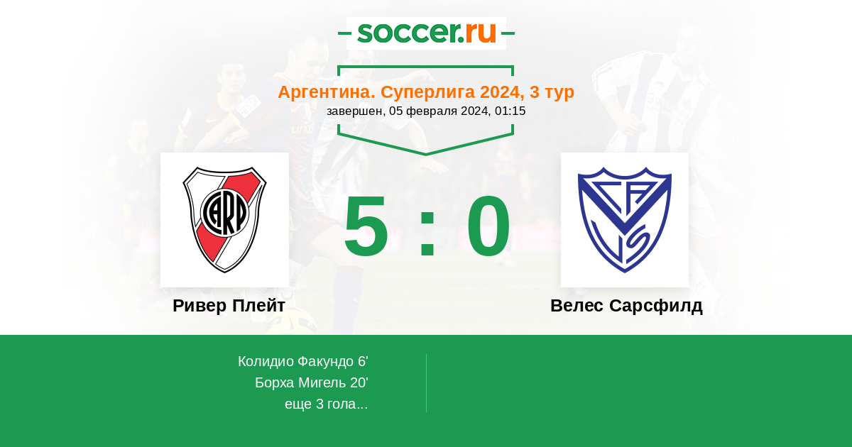 6' (1:0) Колидио Факундо (11) (Барко Эсекьель (21))