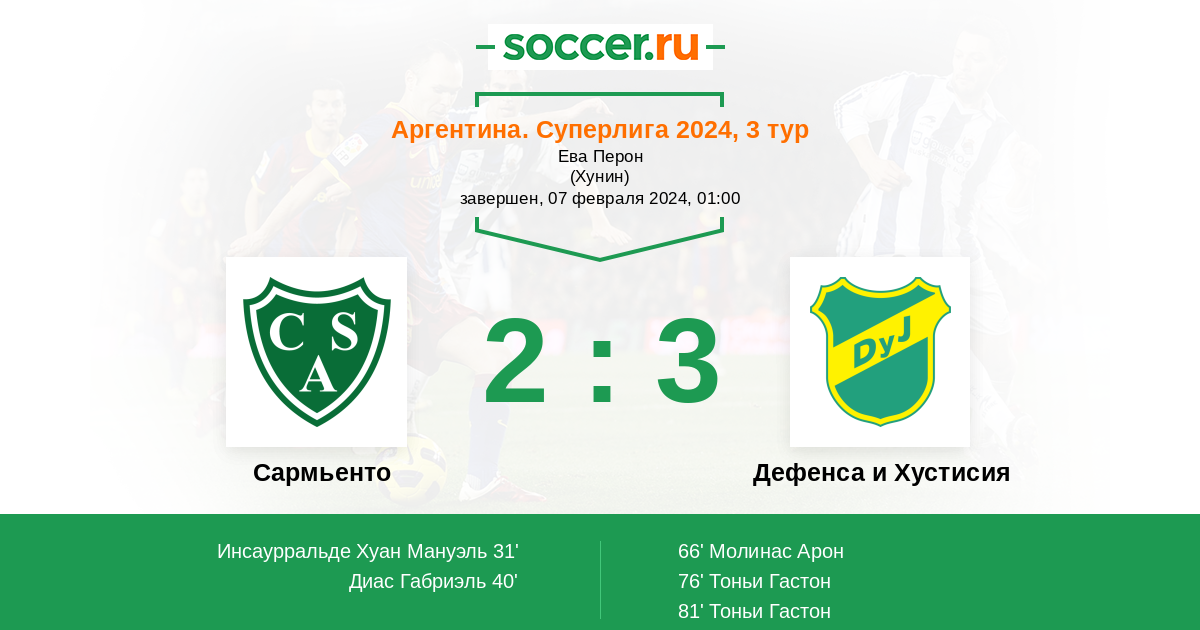 31' (1:0) Инсаурральде Хуан Мануэль (2) (Диас Габриэль (33))