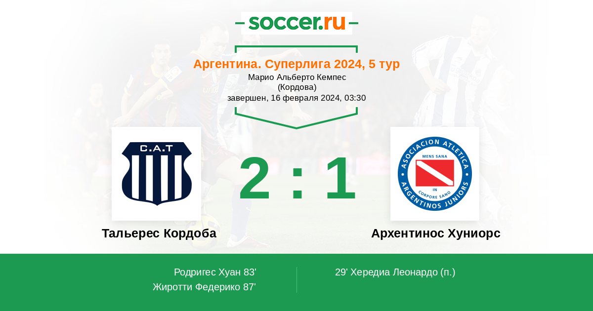 Тальерес Кордоба - Архентинос Хуниорс