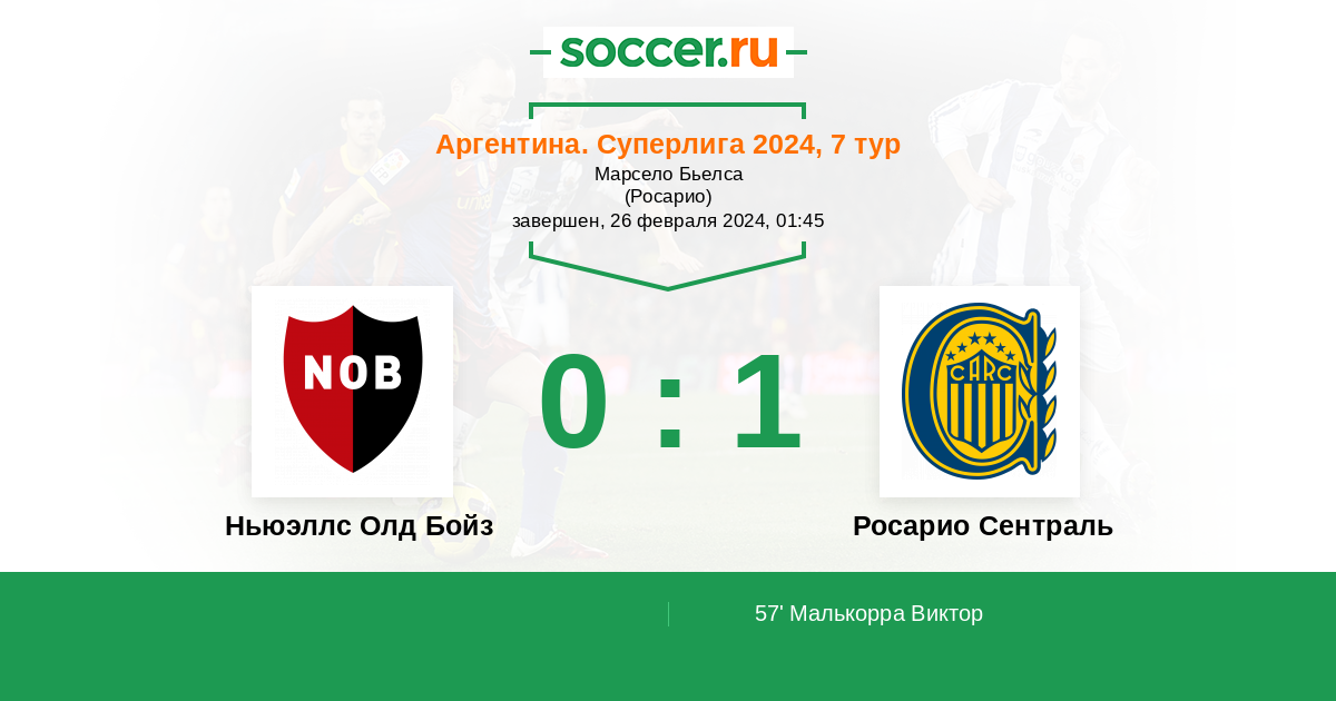 57' (0:1) Малькорра Виктор (10) (Гомес Хонатан (60))