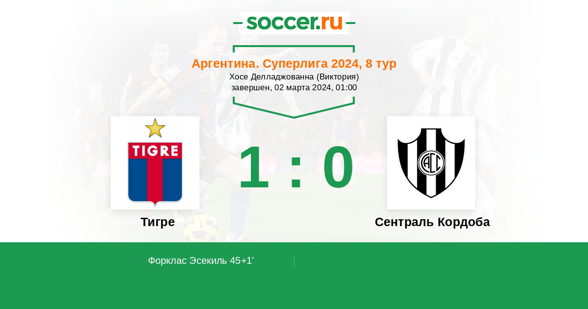45+1' (1:0) Форклас Эсекиль (11) (Флорес Гонсало (33))