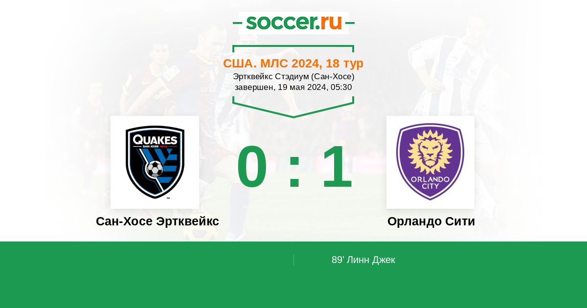 89' (0:1) Линн Джек (27) (Охеда Мартин Эксекиел (11))