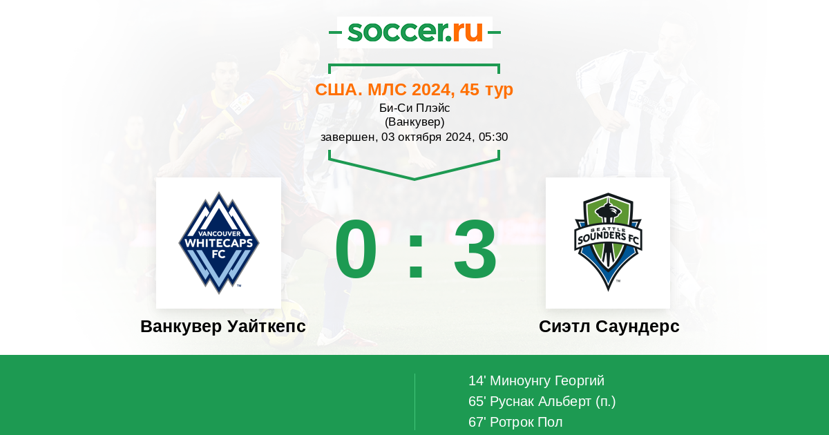 Ванкувер Уайткепс - Сиэтл Саундерс