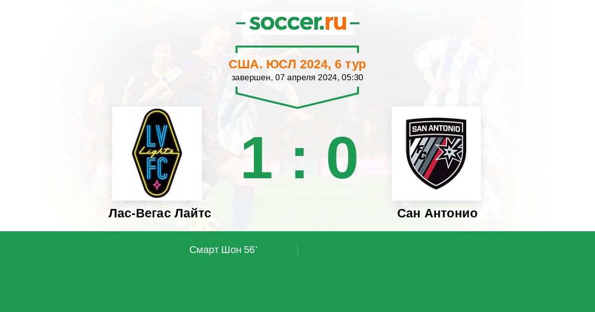 56' (1:0) Смарт Шон (20) (Нгандо Жан-Клод (26))